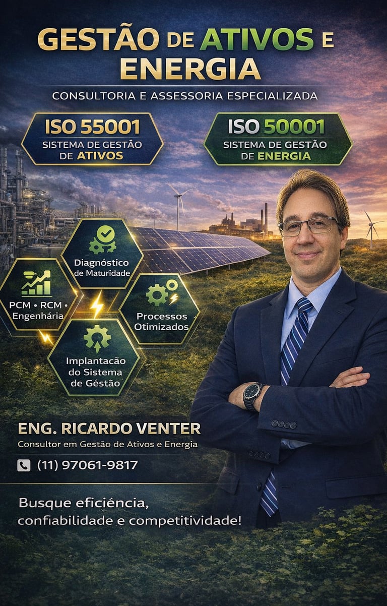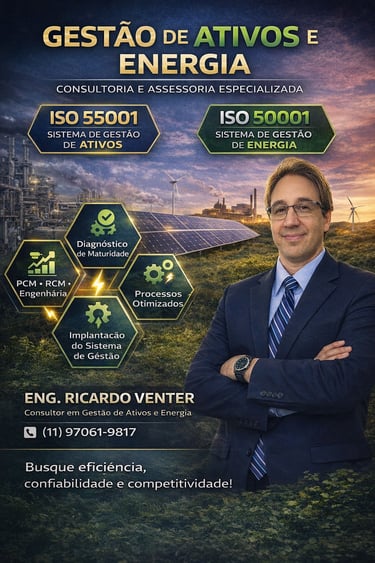 Completa assessoria em gestão de ativos e energia com bases nas normas ISO 50.001 e 55.001